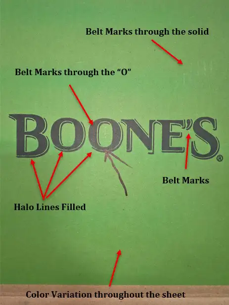 - Slow production speeds on kraft and mottled stock due to slow ink dry times